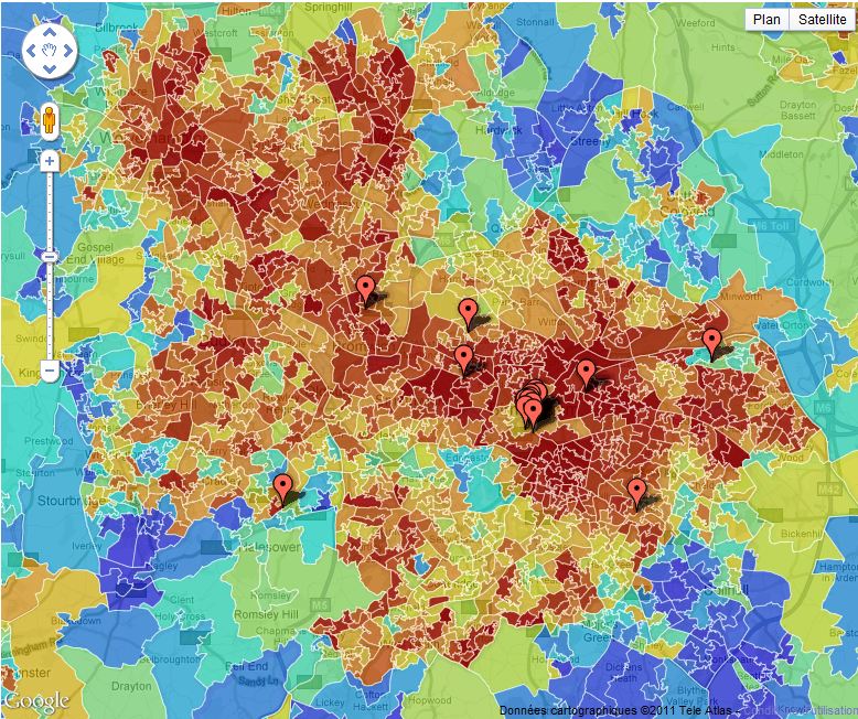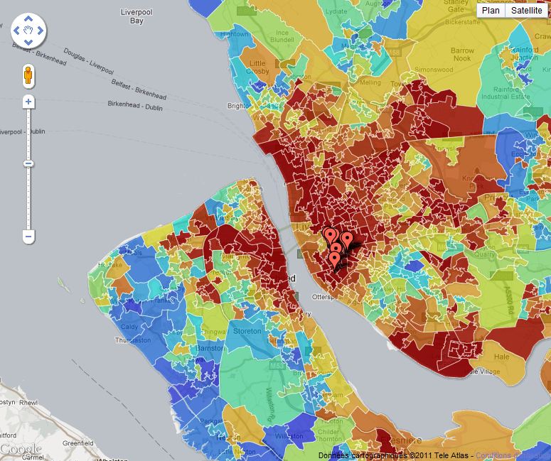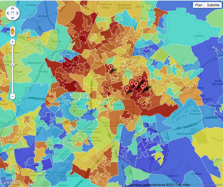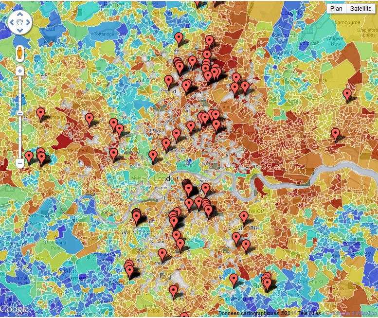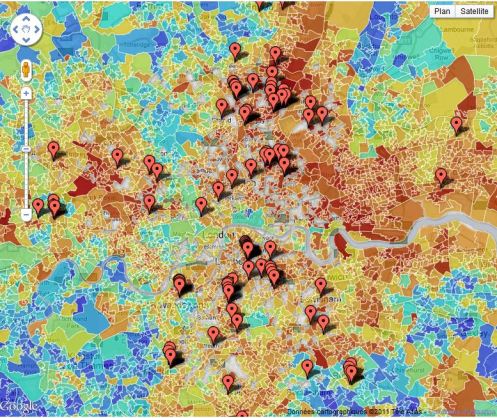 Data journalist Matt Stiles has taken our data on deprivation – and the riot incidents over the last few days and mashed the two up together. The darker reds represent poorer places, the blues are the richer areas. What do you think? Is there a correlation between the two?