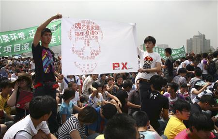 The protesters, mostly young people, sang the national anthem and displayed banners printed with the phrases « we want to survive » and « we want a good environment. » Zhongshan Road, a main artery that passes near the square, was blocked off.