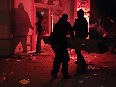 Eine Polizeisprecherin sagte, Unbekannte hätten versucht, in eine Sparkasse unweit des linksalternativen Zentrums „Rote Flora” einzudringen. Außerdem sei Feuer gelegt worden. Die Polizei ging daraufhin mit Wasserwerfern gegen die Randalierer vor.