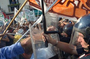 I centri sociali e i partiti della sinistra erano scesi in strada a Venezia per protestare contro il raduno della Lega che domani vedrà Umberto Bossi e tutti i big del Carroccio sul palco di Riva degli Schiavoni. La tensione per il corteo anti-Lega covava da venerdì, quando gli organizzatori si erano visti vietare dalla Questura l’autorizzazione a raggiungere la zona di Riva Schiavoni, cuore della kermesse padana. Così i manifestanti hanno iniziato a fronteggiarsi con le forze dell’ordine in assetto antisommossa. Quando il corteo, con un in testa Beppe Caccia ed altri consiglieri comunali, tutti con le mani alzate, ha cercato di forzare il cordone di polizia, le forze dell’ordine sono intervenute. Gli agenti hanno effettuato una prima carica di alleggerimento, i manifestanti hanno risposto usando le aste di bandiere e striscioni e lanciando fumogeni. Dopo…
