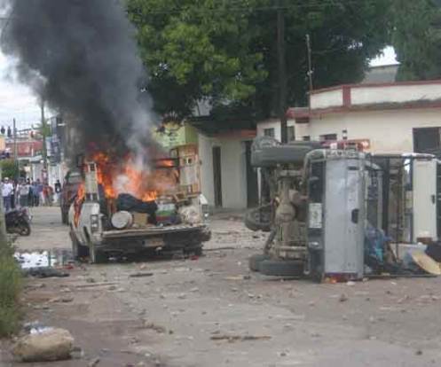 Comitán, Chis.- Con un vehículo incendiado y varios más volcados , dañados y desvalijados, así como varias personas heridas, se saldo el enfrentamiento de integrantes de la Organización Campesina Emiliano Zapata (Ocez- Di Unopi), contra los del Frente de Asociaciones de Barrios y Comunidades (Fabc), que pelean 78 hectáreas de terrenos de la comunidad San Antonio Culanchuy.