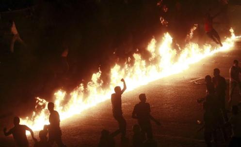 - Protesters jump and run near a line of fire during a demonstration in Cairo …