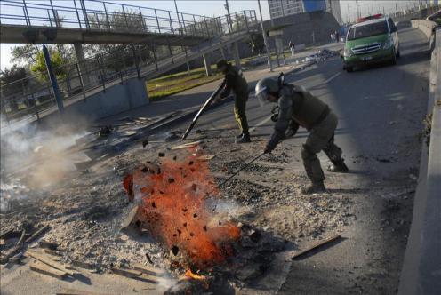 Dix personnes ont été arrêtées et huit policiers ont été blessés, l’un d’entre eux par une arme à feu, a indiqué une source policière. Dans tout le pays, 263 personnes ont été arrêtées depuis mardi à l’issue d’affrontements similaires, épars, mais violents. Le vice-ministre de l’Intérieur, Rodrigo Ubilla, a parlé d’«opérations concertées» de violence.