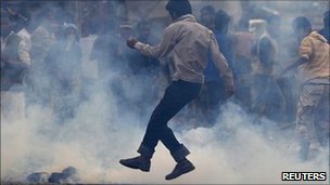 Several people were injured when a crowd of youths held a rally in Sopore, north of Srinagar.