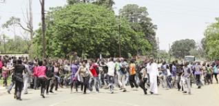 Soon after this incident, four police officers from the riot squad arrived at the university. The students somehow felt intimidated and probably even not safe as they were seen marching to the main gate still singing struggle songs.