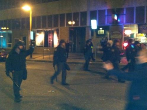 - Police in riot gear deal with Penn State students gathering to support Joe Paterno