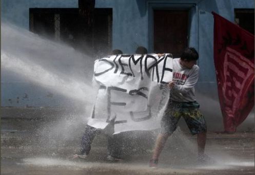 Mientras las negociaciones por el presupuesto educativo siguen en el Parlamento, la segunda jornada de protesta estudiantil en Chile tuvo que ser abruptamente interrumpida a causa de renovados incidentes entre los denominados « encapuchados » y los carabineros, que volvieron a reprimir con carros lanzaagua y gases lacrimógenos.