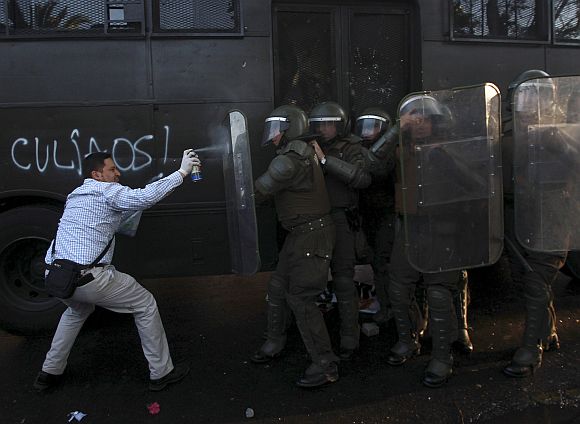 Nueve detenidos y seis policías heridos en un acto en Chile
