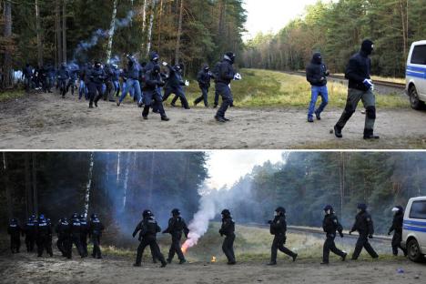 Les manifestants s’étaient positionnés à un carrefour à environ 20 km à l’ouest de Gorleben (nord) et cherchaient à bloquer une route nationale. La police allemande a enjoint les antinucléaires à dégager la route pour laisser passer le trafic avant d’user de gaz lacrymogènes et d’un canon à eau.