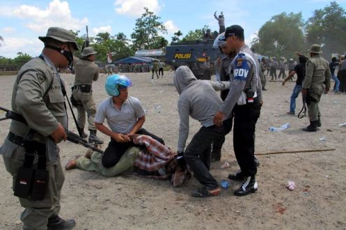 Police said they fired warning shots but Indonesian security minister Djoko Suyanto denied that protesters had been shot.
