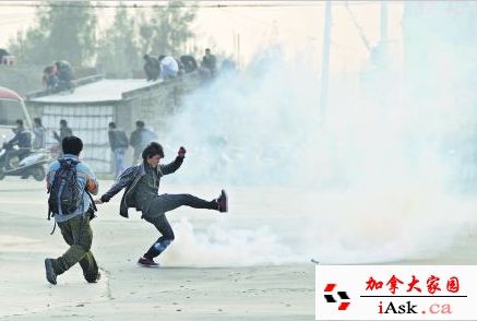 有媒体报道指,警方曾施放数枚催泪弹驱散群众,现场烟雾弥漫,民众四处躲避。公安又一度走向人群,他们带上头盔,手持盾牌,有公安手持扬声器,呼吁民众散开。