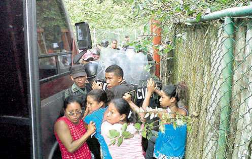 Con una segueta y mazo se abrió la puerta pero niños, mujeres y ancianos impedían el paso a los antimotines y se dio el enfrentamiento y todos corrían, mientras los jóvenes de la comunidad lanzaban piedras a los antimotines, los que respondían con bombas lacrimógenas. Mas…