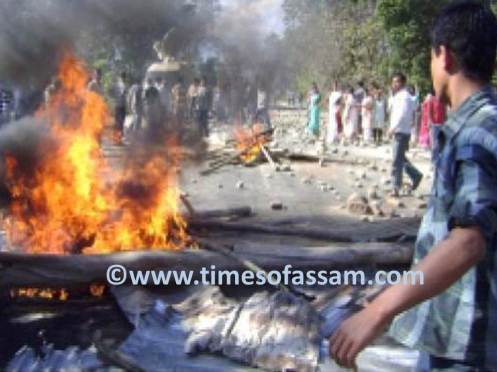 During the second day of the 48-hour Bandh in Lakhimpur district jointly called by Krishak Mukti Sangram Samiti, Takam Mising Porin Kebang, Asom Jatiyotabadi Yuba Chatra Parishad (AJYCP), All Assam Tai-Ahom Students’ Union (AATASU), All Assam Deori Students’ Union (AADSU) protesting police action on the peaceful protestors at the night earlier the situation turned violent when police used teargas and fired in the air against the agitating protesters in Chaul Dhowa locality. The incident occurred at about noon when a vehicle carrying goods for the NHPC’s Lower Subansiri Hydroelectric Power Project site at Gerukamukh tried to move past the road blockade set up by the KMSS and other associate organisations.