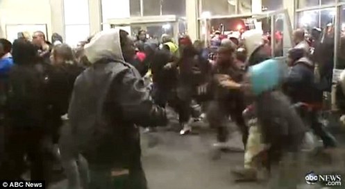 In Atlanta, at least four people were arrested in a mob scene at a suburban mall, according to The Associated Press. Twenty police cars responded and the crowd broke down a door to enter the mall before it opened.