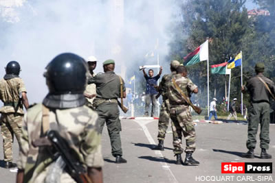 Les coups de gaz lacrymogènes ont de nouveau retenti dans la capitale tananarivienne ce matin devant le jardin d’Ambohijatovo, rebaptisé « place de la démocratie » lorsque les forces de l’ordre ont commencé à disperser la foule, venue répondre à l’appel de l’opposition. Malgré le refus de la préfecture et de la mairie de la ville, la mouvance Zafy, conduite par l’ancien président Zafy Albert a insisté pour déposer des gerbes sur la stèle dédiée aux martyrs de la démocratie. Les échauffourées auraient fait 2 blessés selon le site sobika.com.