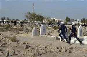 Saturday’s clashes left several injuries and several cars of people taking part in the funeral were damaged. The vice chairman of the opposition grouping Ekha, Ali Yousif Qodrat, was detained by police after they stormed the graveyard firing tear-gas.