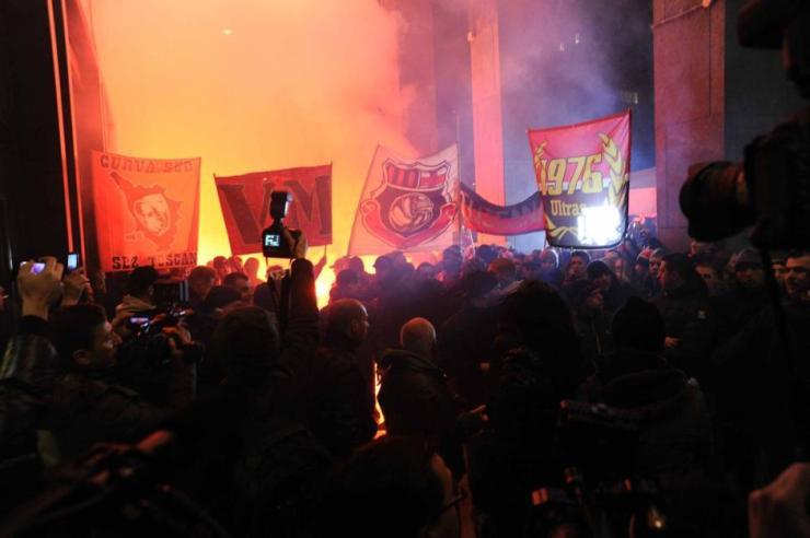 MILANO 30 01 2013 – RISTORANTA GIANNINO DI VIA VITTOR PISANI – TIFOSI DEL MILAN ASPETTANO L ARRIVO DI MARIO BALOTELLI – FOTO MARMORINO-NEWPRESS – MILANO 30 01 2013 – RISTORANTE GIANNINO DI VIA VITTOR PISANI – TIFOSI DEL MILAN ASPETTANO L ARRIVO DI MARIO BALOTELLI – fotografo: MARMORINO