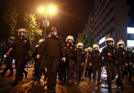 La Place Taksim évacuée par la police et reprise par les manifestants- 11 juin 2013 » Riot policemen chase protesters at Kizilay Square in central Ankara