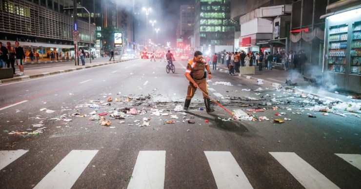 » 6jun2013—agente-da-cet-retira-lixo-da-avenida-paulista-regiao-central-de-sao-paulo-apos-protesto-contra-o-aumento-da-passagem-do-onibus-de-r-3-para-r-320-1370571289026_956x500