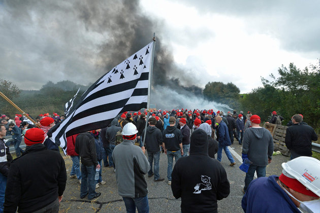 ©PHOTOPQR/LE TELEGRAMME/FRANCOIS DESTOC/ PONT DE BUIS (29) LE 26/10/2013 – ECOTAXE Plus de mille manifestants s’affrontent violemment avec les gendarmes mobiles. Leur but; faire tomber le portique écotaxe