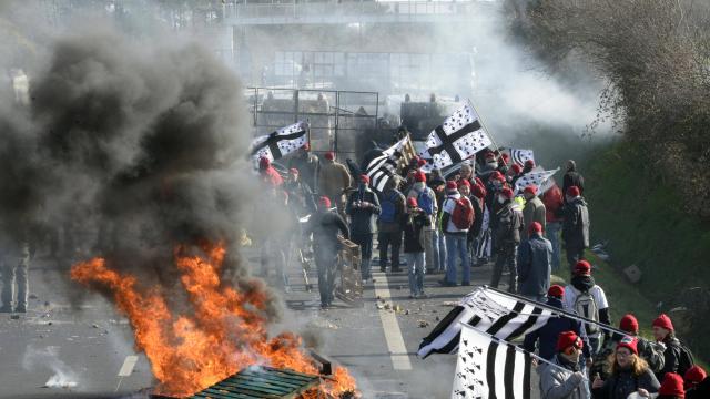 Ecotaxe : affrontements à Brech – 15 février 2014 – avec vidéo