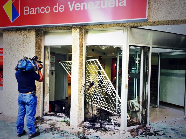 Banque du Venezuela détruite à Los Palos Grandes – 12 mai 2014