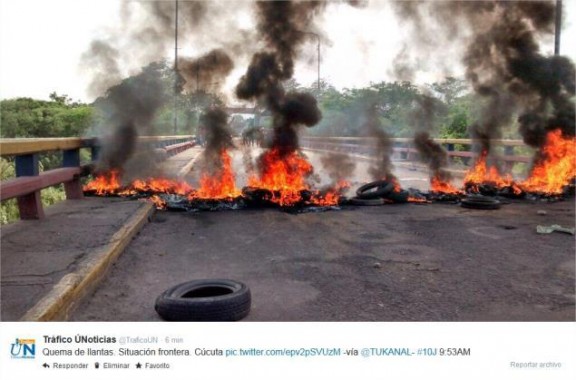 Contre la police : émeute au pont frontière Francisco de Paula Santander, entre entre Cucúta et Ureña – 9 juin 2014
