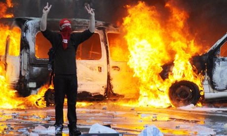 Demonstrators clash with riot police on November 6, 2014 in Brussels in the first mass protest against the new centre-right government’s austerity policies. The march is the first in a series of rallies and strikes against economic and social reforms announced by Prime Minister Charles Michel, a French-speaking liberal who heads an unprecedented centre-right coalition that includes Flemish nationalists. AFP PHOTO / JOHN THYSJOHN THYS/AFP/Getty Images