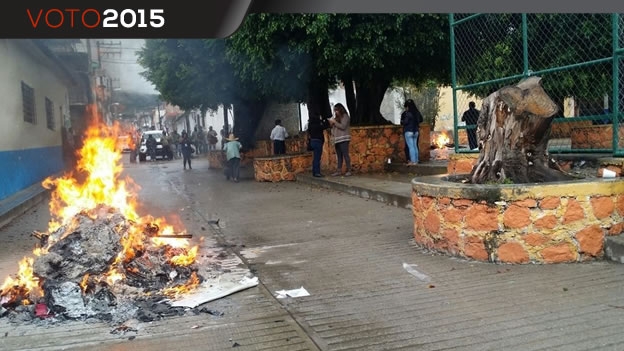 Etudiants disparus : émeutes anti électorales à Villahermosa (Tabasco), Temax (Yucatan), Oxmal (Huejutla, Hidalgo), Oaxaca, Tuxtla Gutiérrez, Huehuetán, Venustiano Carranza et Ocosingo.(Chiapas), Chilpancingo et Tixtla (Guerrero) – 7 juin 2015