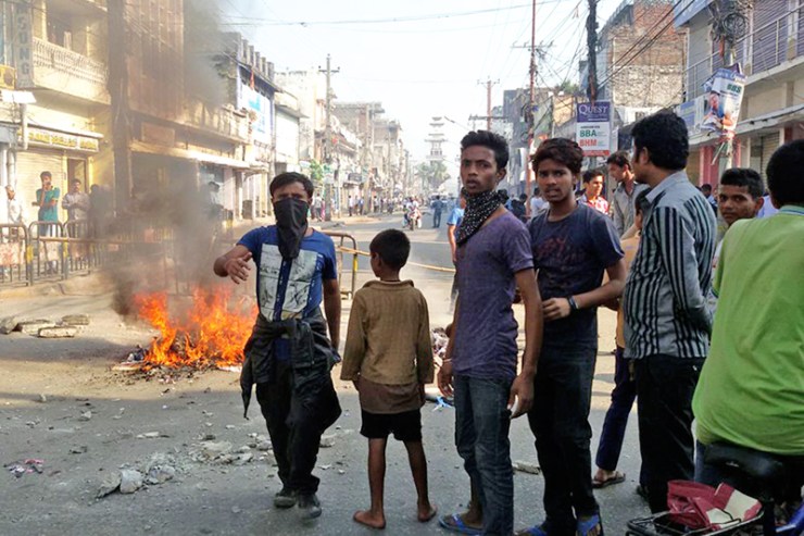 The cadres of United Democratic Madhesi Front (UDMF) burning tyres after the intervention of the Nepal Police to remove them from their sit-in protest. Photo: Ram Sarraf/ THT