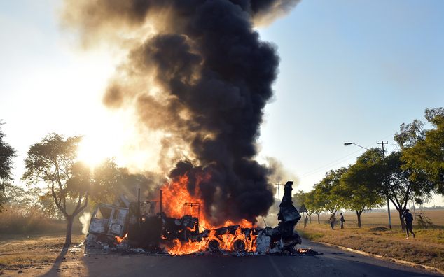 A vehicle burns as angry residents refused to accept the replacement of Pretoria’s mayoral candidate in Atteridgeville, Pretoria, South Africa, Tuesday June 21, 2016. South African rioters blocked roads, looted shops and burned vehicles on Tuesday in several areas of the country’s capital, Pretoria, in a show of anger over the selection of the ruling party’s mayoral candidate ahead of local elections. The violence raised concerns about security ahead of the Aug. 3 elections in South Africa, where periodic unrest over the lack of basic municipal services already stretches police in many poor communities. In the past year, violence and vandalism have also hit some universities and other schools as students protest high fees and voice other grievances. (AP Photo)