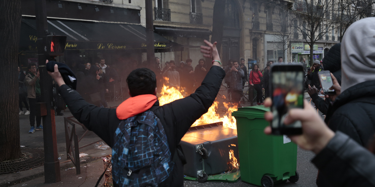 - Place de la Nation (Paris) : lycées bloqués, tensions, poubelles en feu, une manif dégénère