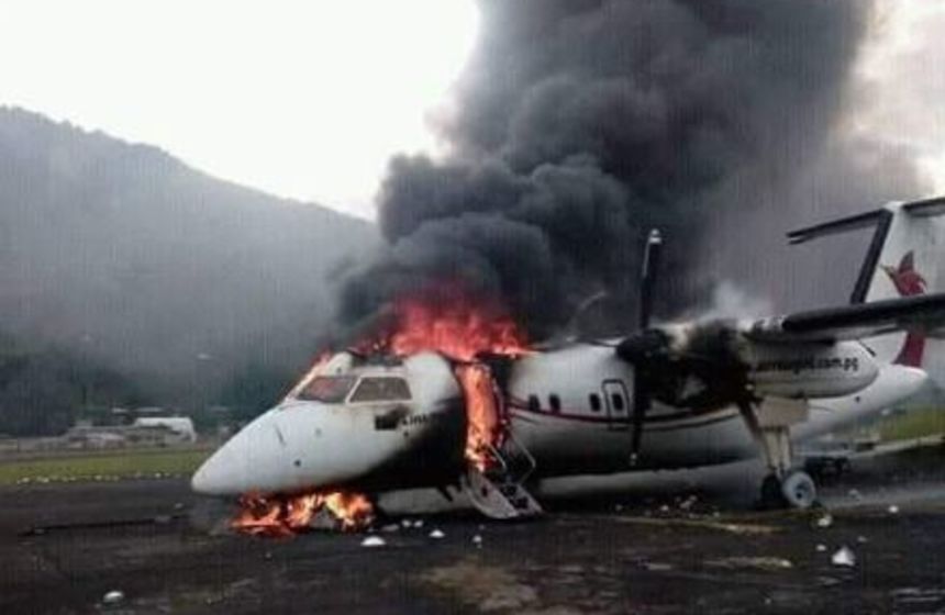 - PICTURE: Link PNG Dash 8 destroyed in civil unrest at Mendi