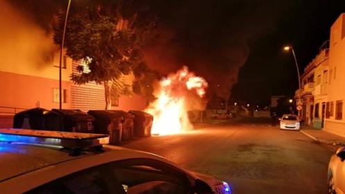• Noche de vandalismo e incendios descontrolados en Chipiona