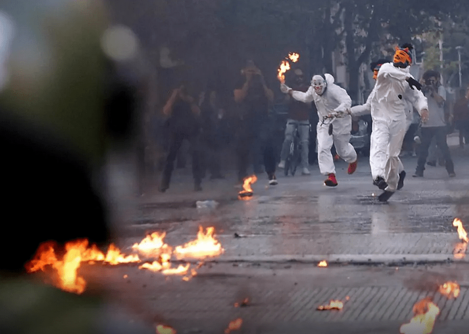 - Incidentes en Santiago: encapuchados lanzan molotov en el INBA y Barros Borgoño