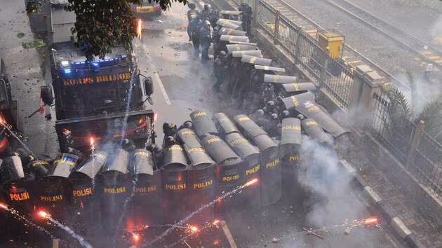 - Photos of violent clashes between riot police and protesters in Indonesia