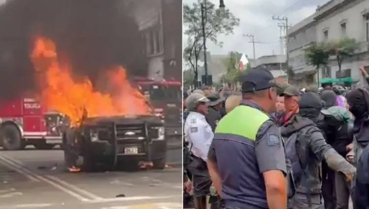 - Durante marcha por el 2 de octubre manifestantes en Toluca quemaron una patrulla
