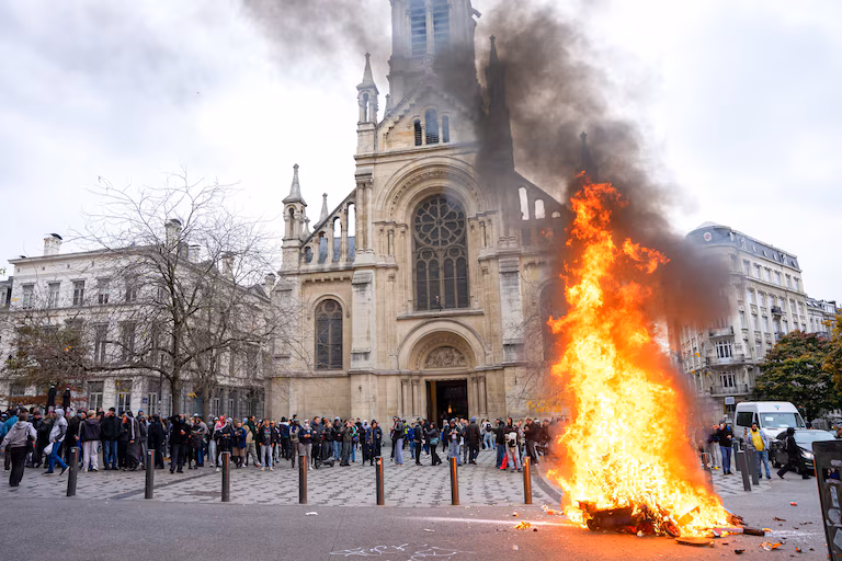 - Grosse tension au Parvis de Saint-Gilles après la manif nationale: « En quoi mettre le feu à des palettes va servir à quoi que ce soit? » (photos)