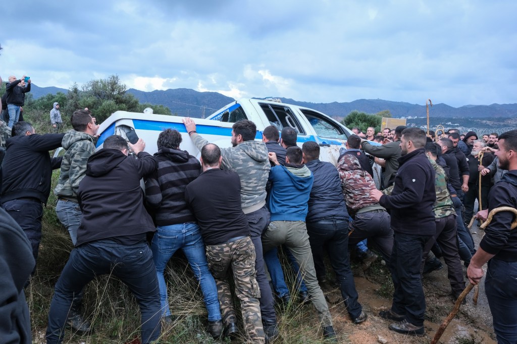 Clashes between protesting farmers and the police during a blockade attempt of the Daskalogiannis Airport, in Chania, Crete by , December 8, 2025. Farmers in Greece protest the delay in the payment of European compensation. / Επεισόδια μεταξύ αγροτών και αστυνομίας κατα την απόπειρα αποκλεισμού του Αεροδρομίου Δασκαλογιάννης, στα Χανιά, Κρήτης απο διαμαρτυρόμενους αγρότες, 8 Δεκεμβρίου 2025. Οι αγρότες σε όλη την Ελλάδα διαμαρτύρονται για την καθυστέρηση καταβολής των ευρωπαϊκών αποζημιώσεων.
