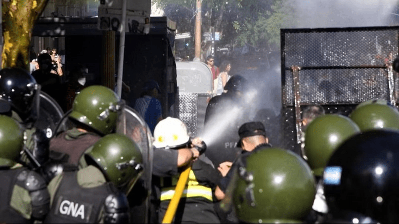 - Incidentes y camiones hidrantes en las afueras del Congreso mientras sesiona Diputados