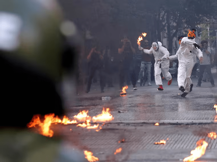 • Graves incidentes en el centro de Santiago: encapuchados lanzan bombas molotov fuera del Instituto Nacional