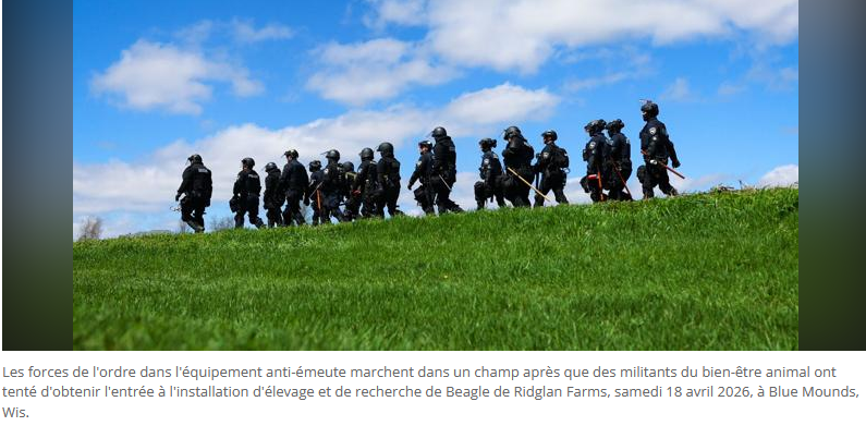 Elevage de beagles pris d’assaut par des animalistes à Blue Mounds (Wisconsin) – 18 avril 2026